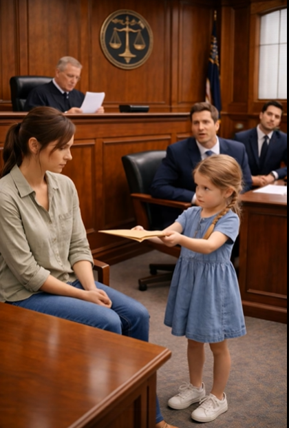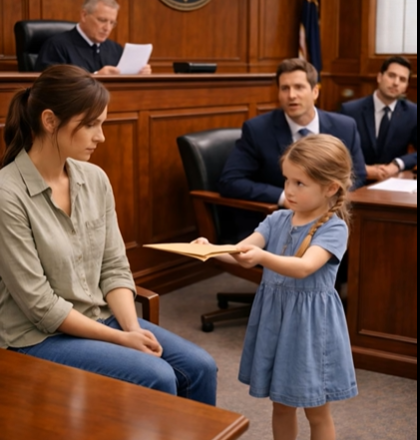Die kleine Amelia stand mitten im Raum, zierlich, aber unerwartet stark. Ihre Hände zitterten, doch ihr Blick war entschlossen.