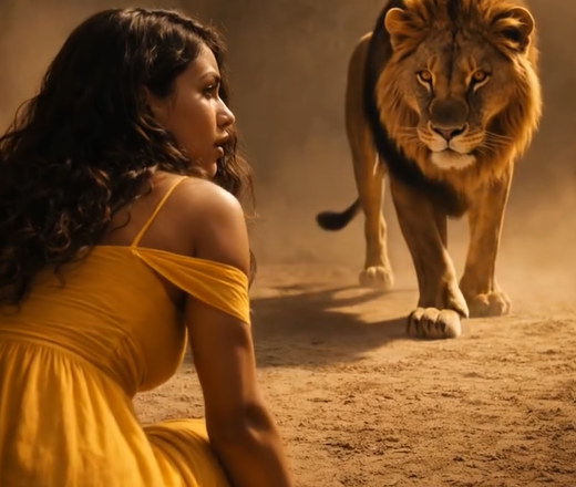 Der Löwe war nur noch wenige Schritte von ihr entfernt.
