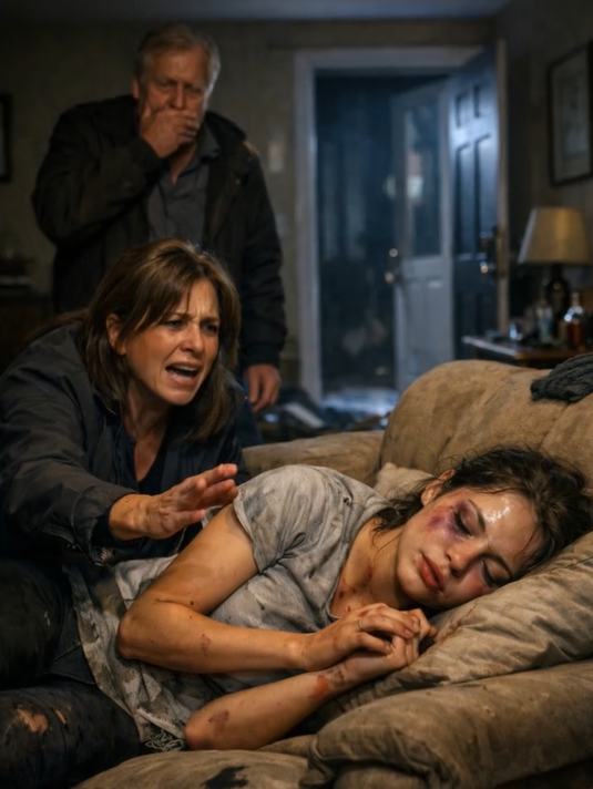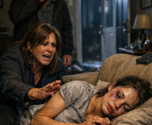 Sie lag auf der Couch. Sie war blass, fast leblos. Ihre Lippe war geschwollen, ihr Gesicht voller blauer Flecken. Ihre Hände zitterten, als wollte sie etwas sagen, aber sie hatte nicht die Kraft dazu.