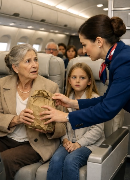 Meine Tochter hatte mir vor dem Flug eine kleine, isolierte Lunchtasche gepackt. Aufgrund meiner gesundheitlichen Einschränkungen durfte ich nichts essen. Es war nichts Besonderes – nur einfache, sorgfältig verpackte Mahlzeiten, die mich während des Fluges beruhigen sollten.