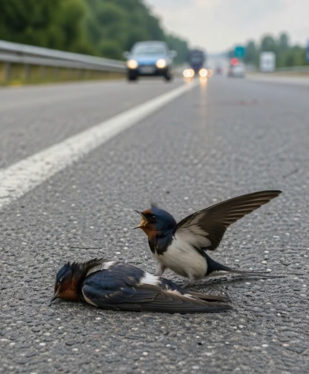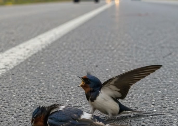 Vlaštovka však neustoupila. Rozpřáhla křídla a stála nad druhým ptákem, jako by ho chtěla chránit. Bylo to instinktivní, ale zároveň neobvyklé. V takové situaci většina ptáků odlétá.