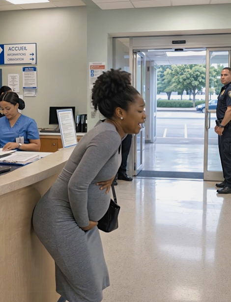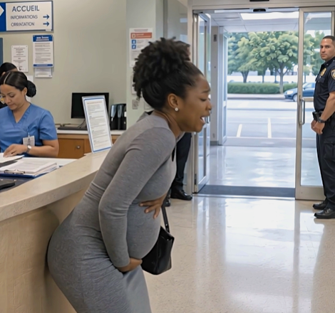 Byla v osmém měsíci těhotenství a kontrakce začaly příliš brzy. Jednou rukou se držela za spodní část zad, druhou se opírala o recepční pult.