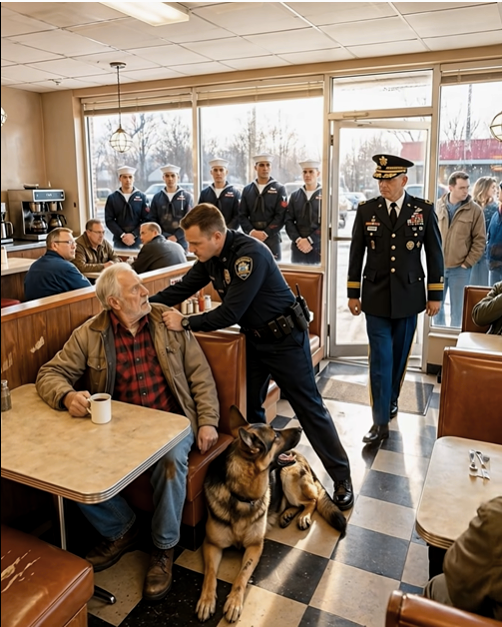 A rendőr fürge léptekkel szállt ki, mintha egy veszélyes incidens miatt jött volna. Körülnézett, meglátta az idős férfit és a kutyát, és köszönés nélkül az asztaluk felé indult.