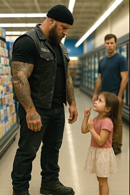 Er stellte langsam seinen Einkaufswagen ab, kniete sich hin und legte dem kleinen Mädchen sanft die Hände auf die Schultern. Dann begann er, schnell und flüssig zu gebärden.