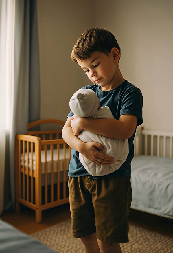 Žena věděla, že nesmí reagovat prudce. Přistoupila pomalu a tiše řekla: „Rozumím, že jsi smutný a máš pocit, že jsi sám. Ale tvůj bratr není tvůj nepřítel. Je to součást naší rodiny. Moje láska k tobě se nikdy neztratila.“
