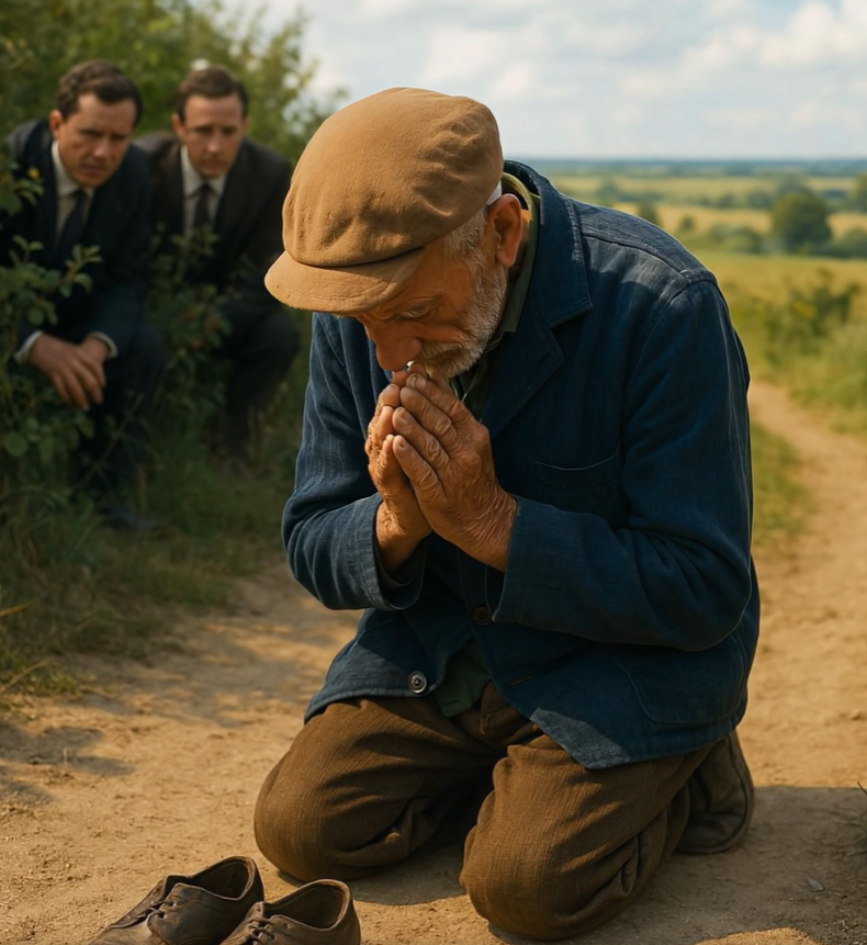 Starý muž, který si jejich přítomnosti vůbec nevšiml, dokončil modlitbu, vstal a pokračoval pomalu domů. Pro něj to byl obyčejný okamžik – krátké zastavení a poděkování. Pro tři muže, kteří chtěli jeho život obrátit naruby, to však byl okamžik, který si pamatovali až do smrti.