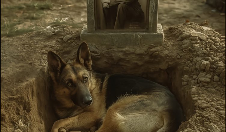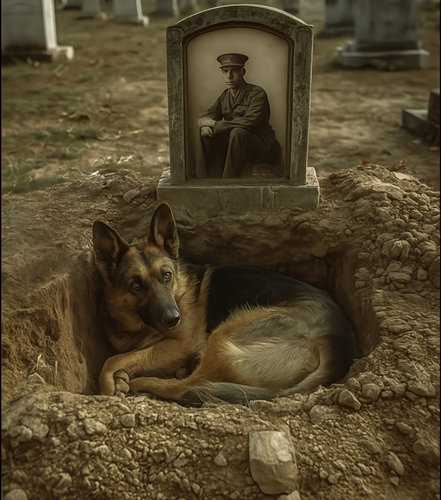 Bylo to jedno odpoledne, kdy jsem se procházel hřbitovem Maple Grove. Nepřišel jsem za nikým konkrétním, jen jsem nechal myšlenky volně plynout. Poblíž sekce věnované veteránům jsem si všiml něčeho neobvyklého: velký německý ovčák ležel před skromným šedým náhrobkem. Jeho postoj byl klidný, přesto naplněný tichou odhodlaností, která se nedala přehlédnout.