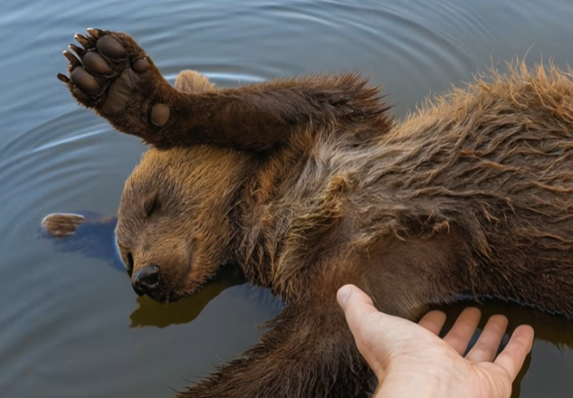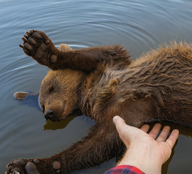 „Talán megfulladt” – motyogtam magamban, miközben óvatosan kihúztam a vízből. A szívem hevesen vert, ahogy a kicsi testét a száraz part felé húztam. Megpróbáltam rázni, finoman megrázni, hátha újra életre kel, de semmi nem történt. Az első percekben minden remény elveszettnek tűnt. Már kezdtem elfogadni a tragédiát, amikor a lehetetlen megtörtént: a medvebocs lassan kinyitotta a szemét. Kis, félelemmel teli tekintete rám szegeződött, és egy halk sípolással jelezte, hogy él.