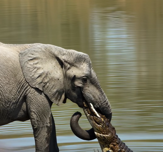 Az ütés olyan gyors volt, hogy még az anyaelefántnak sem volt ideje reagálni. A krokodil az állkapcsával megragadta a fiatal elefánt ormányát, és elkezdte a vízbe húzni. Kétségbeesett ordítás hasított a levegőbe, ami még a legkeményebb szíveket is megremegtette.