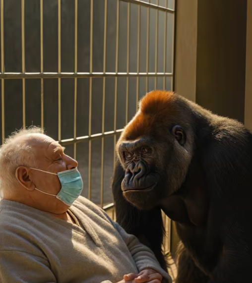 Kibo odalépett az öregemberhez, egy pillanatig némán figyelte, majd lehajtotta hatalmas fejét, és óvatosan megérintette András kezét a homlokával. Az öregember lassan felemelte remegő kezét, és megsimogatta a gorilla arcát. „Emlékszel rám, ugye?” – suttogta halkan. Kibo halkan morgott, majd letérdelt, és gyengéden átölelte az öregembert hatalmas karjaiba.