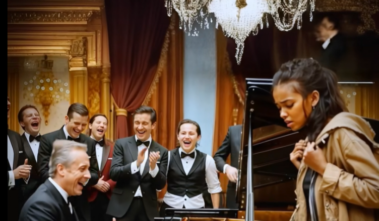 Amelia – ez volt a lány neve – nem válaszolt. Csak a zongorára nézett, mintha az hívná. Az egyik vendég gúnyosan azt mondta: „Hadd játsszon. Jó móka lesz.” A tömeg nevetett, néhányan még tapsoltak is.