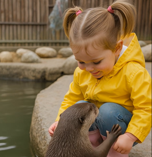 Holčička si dřepla a začala ji hladit. Srst byla mokrá, ale hebká. Vydra se ani nepohnula, naopak se k ní přitulila, jako by cítila, že má před sebou čisté a nevinné srdce. Lidé, kteří šli kolem, zastavovali a dívali se. Scéna působila tak křehce, že někteří návštěvníci začali tiše fotografovat, jiní jen pozorovali s úsměvem.