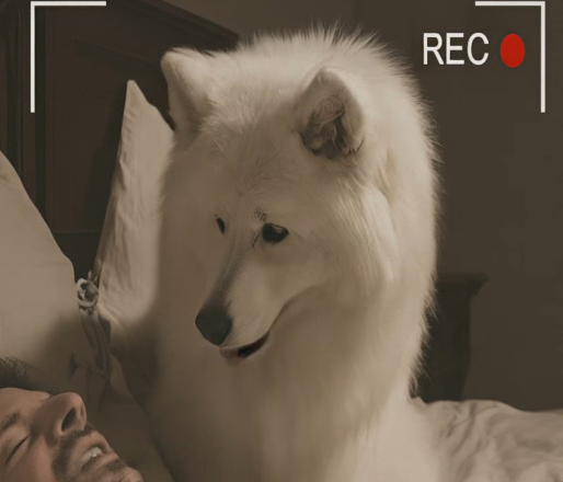 Video začalo zcela normálně. Pár spí, fena leží u nohou postele, občas se otočí, vstane, zívne. Ale kolem třetí ráno se její chování změnilo. Najednou zpozorněla, zvedla hlavu a dlouze naslouchala. Pak se tiše postavila, pomalu se přiblížila k posteli a začala se dívat na spící pár. Minuty plynuly. Fena nehnula ani svalem. Jen tiše dýchala. V jednom okamžiku zvedla hlavu, jako by se dívala nad postel – a v tom záznamu se objevilo cosi, co oba ztuhlo.