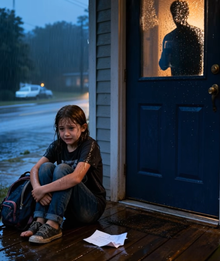Dívka se posadila na schody. Rozhodla se počkat. Její rodiče jistě brzy přijdou domů a dají to do pořádku. Mezitím se nad domem pomalu shromažďovaly mraky a první kapky deště chladně dopadaly na chodník. O pár okamžiků později se spustil liják. Dívka si držela batoh nad hlavou a snažila se chránit, ale kabát, svetr a pak i šaty promočily. Voda se jí hromadila v botách. Vlasy jí stékaly po obličeji.