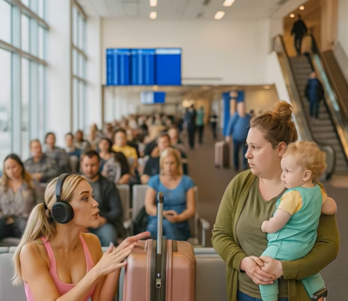 Der Flughafen war bis zum Bersten gefüllt. Eine Verspätung, die eigentlich nur eine Stunde dauern sollte, dehnte sich auf vier aus, und die Gemüter erhitzten sich. Kinder weinten, Kleinkinder klammerten sich an die Beine ihrer Eltern, ältere Menschen stützten sich auf Krücken, und vor allem – alle kämpften um den einzigen freien Sitzplatz.