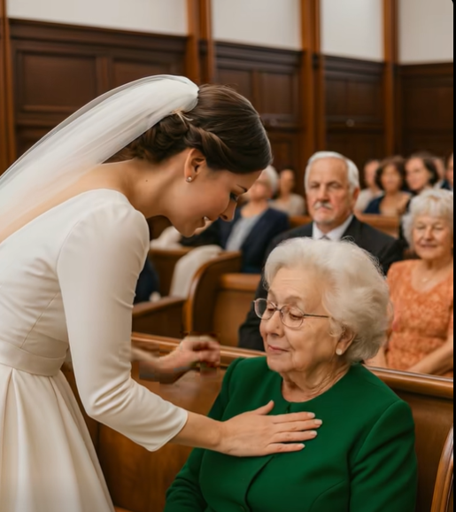 Und meine Schwiegertochter kam auf mich zu, strich mein altes grünes Kleid glatt und glättete ein paar Falten, als wollte sie die Last der Jahrzehnte lindern. Die Geste war so zärtlich, dass sie mich tief berührte.