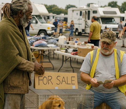 Er trug eine schmutzige Jacke, abgetragene Schuhe und einen grauen Bart. In seinen Augen lag der Blick eines Mannes, der längst aufgehört hatte, auf Glück zu hoffen. Er wollte nicht feilschen. Er fragte weder nach der Herkunft noch nach dem Alter der Hunde. Er stand einfach nur schweigend da und beobachtete.