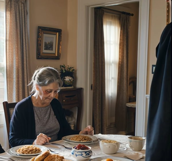 Když sešel dolů, chvíli jen stál ve dveřích. Pak se ušklíbl, když si všiml mého obličeje – nateklého rtu, tmavnoucí modřiny. „Tak jsem konečně pochopil, kde je moje místo,“ pronesl posměšně a posadil se ke stolu. Vzal si sušenku, jako by šlo o běžné ráno.