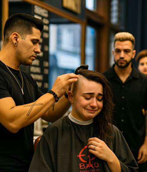 Další holič se přidal. Pak další. Strojek bzučel znovu a znovu. Vlasy padaly na podlahu, tentokrát už ne jen její. Celé holičství se během několika minut změnilo. Muži, kteří byli symbolem drsnosti, stáli s oholenými hlavami a vážnými pohledy.