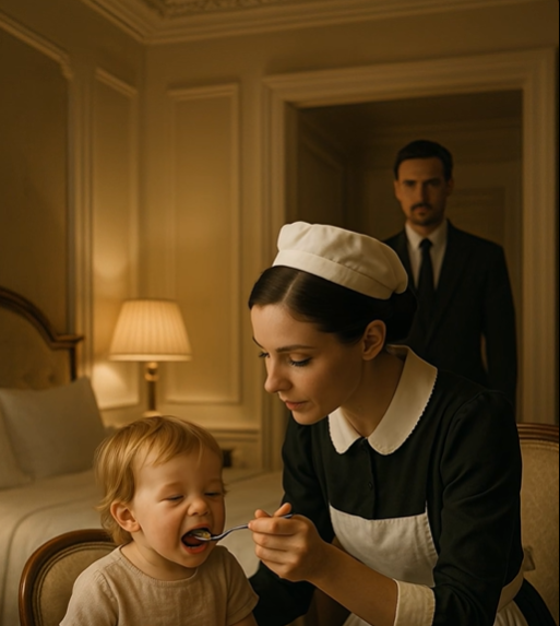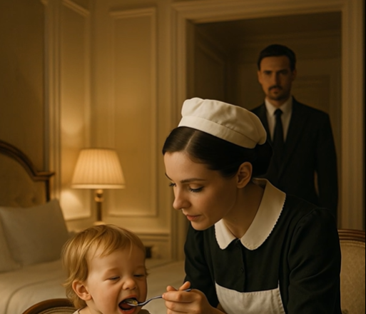 Jednoho večera, když se dům ponořil do ticha a milionář seděl ve své kanceláři s hlavou v dlaních, služebná tiše zaklepala na dveře. Vešla pomalu, se sklopeným zrakem.