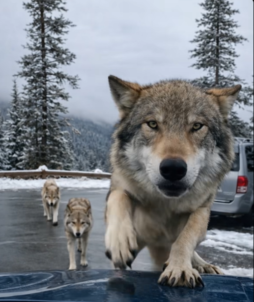 Nevyběhl divoce. Byl to přesný, rozhodný pohyb. Skočil přímo na kapotu. Náraz byl tupý a těžký. Kov zaskřípal pod jeho vahou. Drápy klouzaly po laku, zanechávaly hluboké rýhy. Vlk se opřel tlapami o kapotu, čenichem se přiblížil ke sklu.