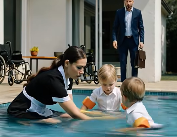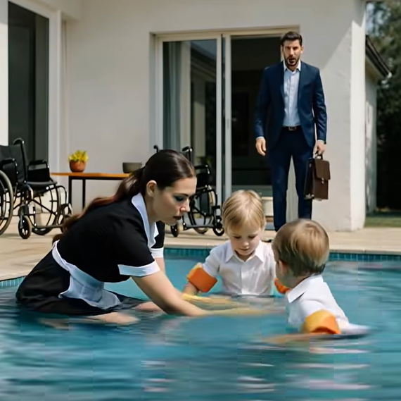 Zůstal stát na terase a sledoval scénu před sebou. Jeho děti byly ve vodě. Smály se. A vedle nich stála hospodyně, která porušila každý jeho příkaz.