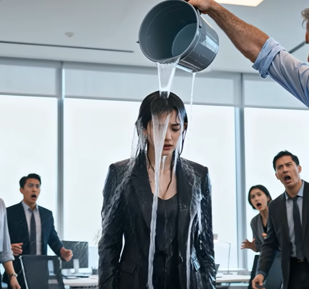 Ledová voda se na Isabel snesla jako náraz. Promočená od hlavy k patě, vlasy přilepené k obličeji, bunda nasáklá vodou a studem. Několik zaměstnanců instinktivně ucuklo. Jedna žena si zakryla ústa rukou. Nikdo ale nezasáhl.