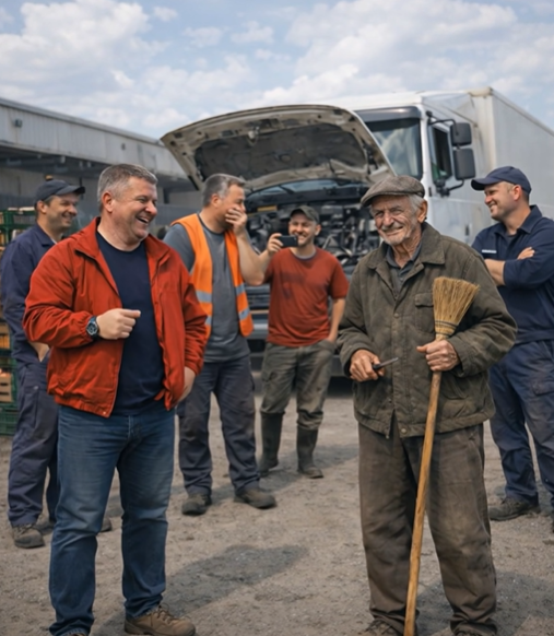 Otočil se k odcházejícímu kamionu, který právě vyjížděl z rampy včas, se zbožím zachráněným před zkázou.