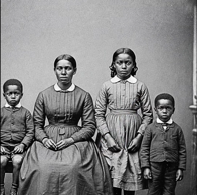 Zprvu mě zaujaly detaily typické pro dobu. Těžké sukně, tmavé kabáty, děti se stejnými vážnými výrazy jako dospělí. Uprostřed stála žena, zřejmě matka, po její pravici muž s tvrdým pohledem. Kolem nich čtyři děti. Dvě dívky. Dva chlapci.