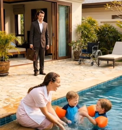 Er stand da, wie gelähmt. Er sah seine Söhne am Pool. Er sah ihre Hände im Wasser. Er sah etwas, das er seit Jahren nicht mehr gesehen hatte. Mateo lachte leise. Nicht laut. Zerbrechlich. Aber es war ein Lachen.