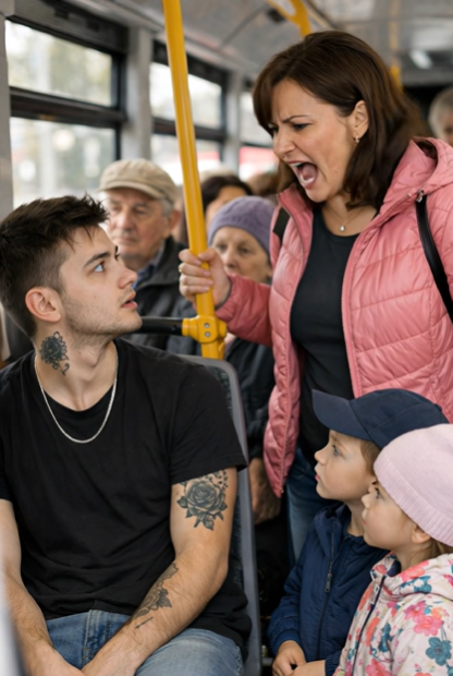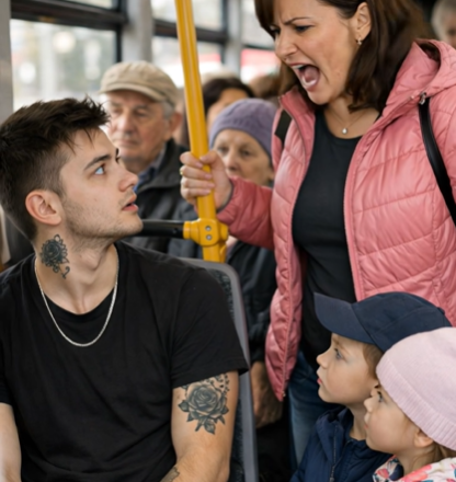 Na další zastávce nastoupila žena se dvěma malými dětmi. Jedno držela pevně za ruku, druhé se tisklo k jejímu boku. Rozhlédla se po autobuse a její pohled se okamžitě zastavil na mladíkovi. Bez zaváhání k němu přistoupila.