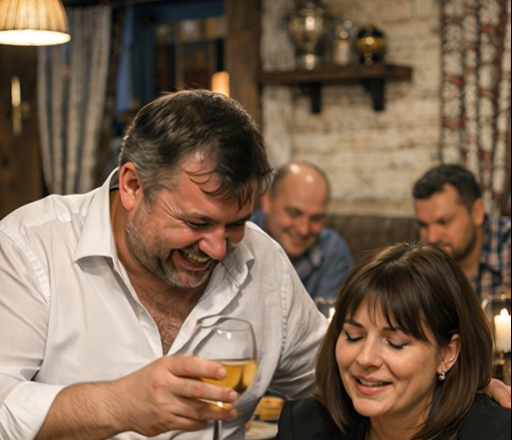 Nervöses Lachen ging durch den Raum. Verlegen, gezwungen. Einige der Gäste senkten den Blick, andere kicherten, weil sie nicht wussten, wie sie sonst reagieren sollten. Der Ehemann fühlte sich durch ihre Reaktion bestärkt.