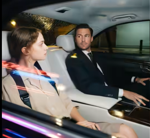 Ein Mann saß neben ihr. Nicht hinter dem Steuer – neben ihr. Der Fahrer saß vorne, durch eine diskrete Trennwand abgetrennt.