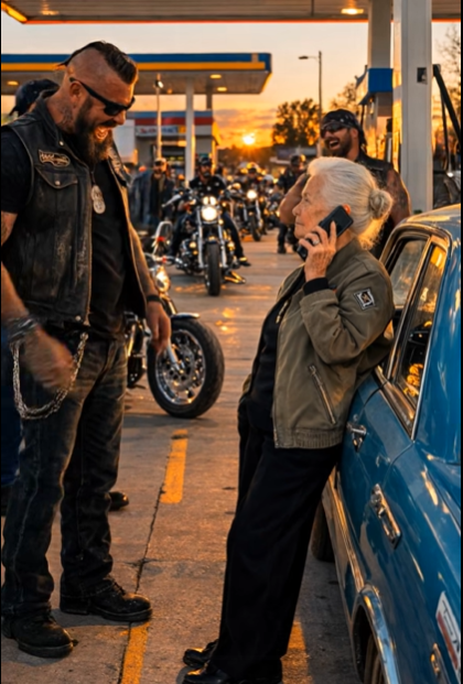 Motorkáři dál vtipkovali, přesvědčeni, že situace už dosáhla vrcholu zábavy. Opřeli se o motorky, nastartovali motory a čekali na jakoukoli reakci, kterou si představovali, že bude následovat.