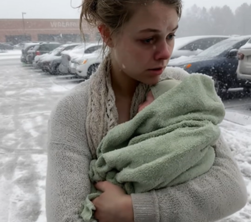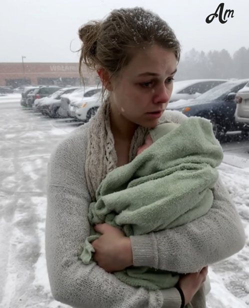 Sie stand am Rand des Parkplatzes, etwas abseits, als wollte sie unsichtbar sein. Sie hielt ein kleines Kind im Arm, nur in ein dünnes Handtuch gehüllt. Es war kalt, der Wind blies gegen die Autos, und sie zitterte so stark, dass man sie unmöglich übersehen konnte.