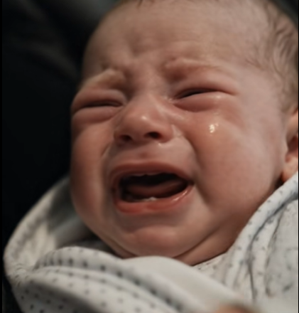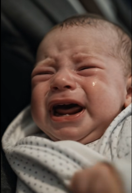 Seine erste Reaktion war eindeutig – Verärgerung. Er wich etwas zurück, runzelte die Stirn und sah die Frau neben sich an. Es war klar, dass ihn die Situation beunruhigte. Sein Blick wanderte zu dem Kind und dann zurück zu der erschöpften Mutter.