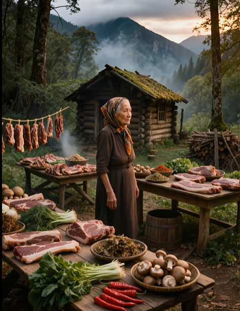 Getrocknetes Fleisch hing unter dem Schuppen. Kisten mit Gemüse waren in der Erde vergraben. Gläser mit Kräutern, Ölen und Essiggurken. Alles geschützt, aufgeteilt, bereit.
